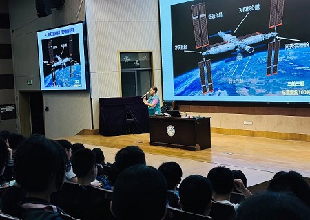 5月12日晚,中國科學(xué)院老科學(xué)家科普演講團(tuán)副團(tuán)長石磊走進(jìn)寧波市鄞州區(qū)第二實(shí)驗(yàn)中學(xué)主講《走進(jìn)中國空間站》,為孩子們帶來一場奇幻的“星際之旅”。